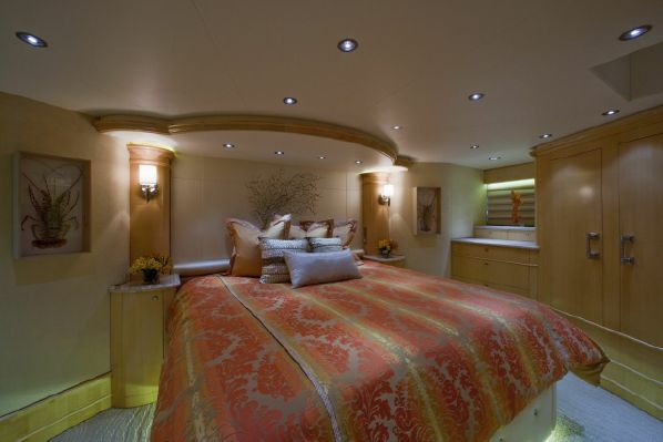 Master Stateroom The master stateroom is located just forward of the galley and takes full advantage of her almost 23’ foot beam. This stateroom is very eloquently decorated and her ensuite head offers her owners all of the comforts of home.